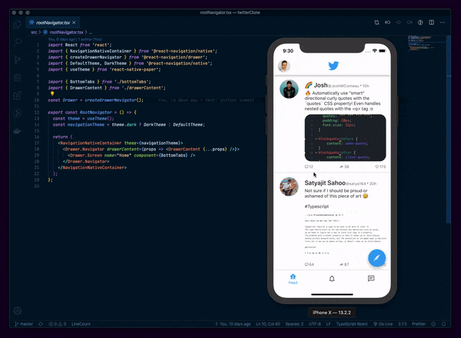 function onTweetPress() { navigation.push('Details');}The implementation of Feed and Details components is quite big and complex, that's why I am not gonna post it here. Please make sure to check it out on github repo